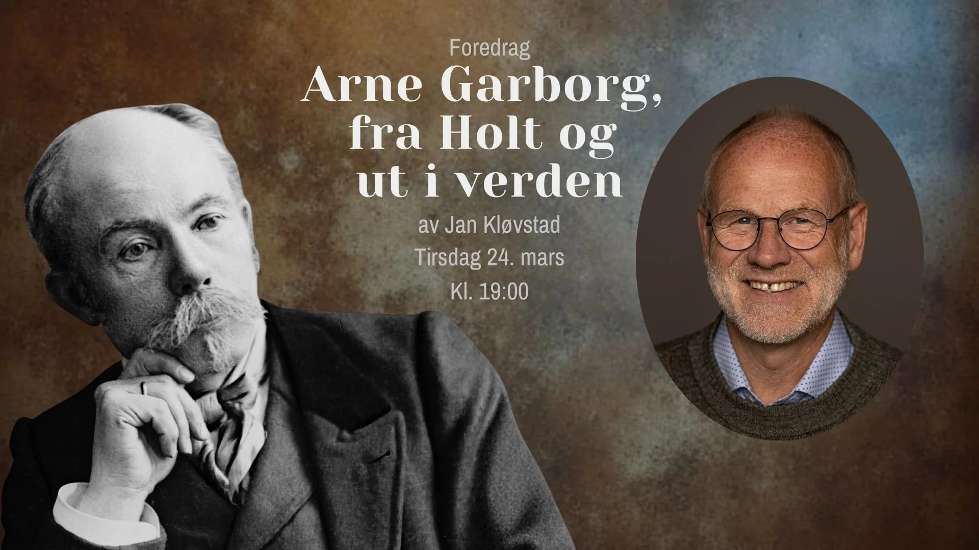 I år er det 175-årsjubileum for Arne Garborg, og jernverksmuseet er med på markeringa . Arne Garborg gjekk på Holt seminar frå 1868 til 1870, etablerte Tvedestrandsposten og Lærerstandens avis i 1872, og blei ein av Norges og Nordens fremste forfattarar og samfunnbyggarar i mange tiår. Ungdomsåra i Holt var viktige for han. Det var her han endeleg fekk lov til å spele det syndige instrumentet fele, det var her han kom seg vekk frå den mørke pietismen i heimen. Og det var også her han fekk det triste bodet om at far hans hadde tatt livet sitt. Foredraget vil handle om Arne Garborgs liv, om den unge Garborg på våre kantar, og korleis vi kan følgje spora frå desse åra vidare i livet hans.