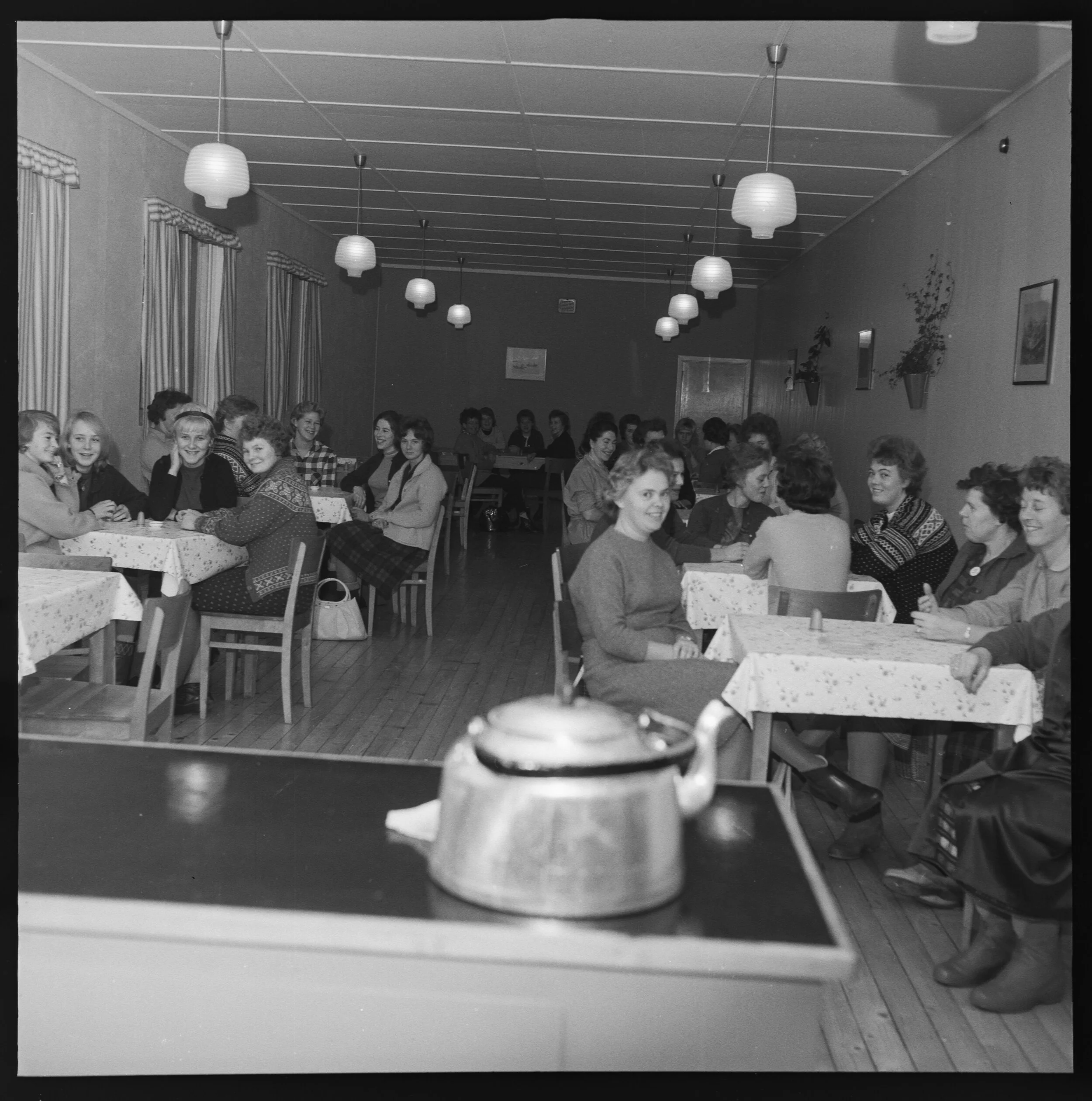 Foto: Matpause i kantina i 1962. Foto: KUBEN/Aust-Agder museum og arkiv (AAA-PA-2421.L8.3182.3)
